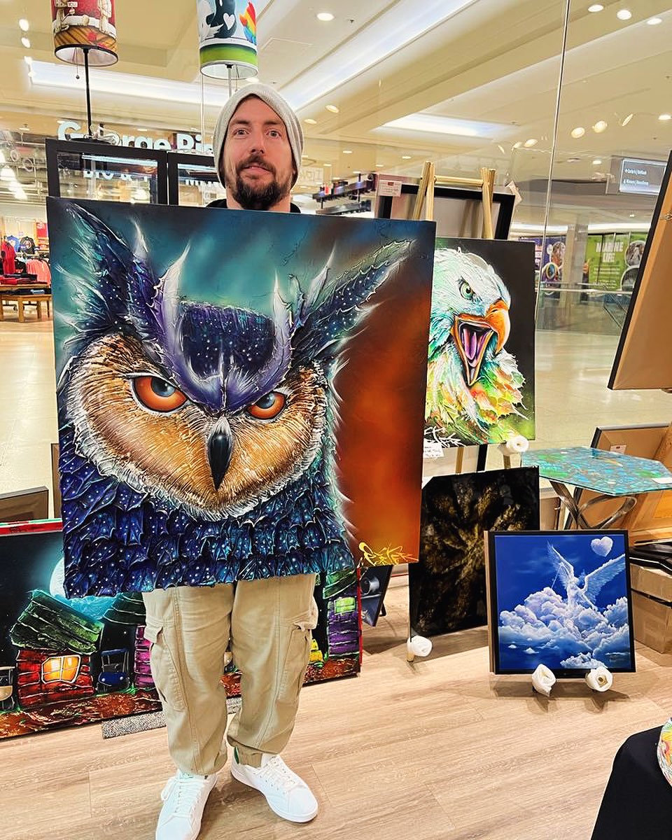 I specialize in custom art commissions, ranging from canvas paintings of various sizes to expansive wall murals for businesses and private residences. Please reach out to me with specific details about your vision and the size you desire, and I can provide you with accurate price estimates and a time-frame for completing your one-of-a-kind piece.